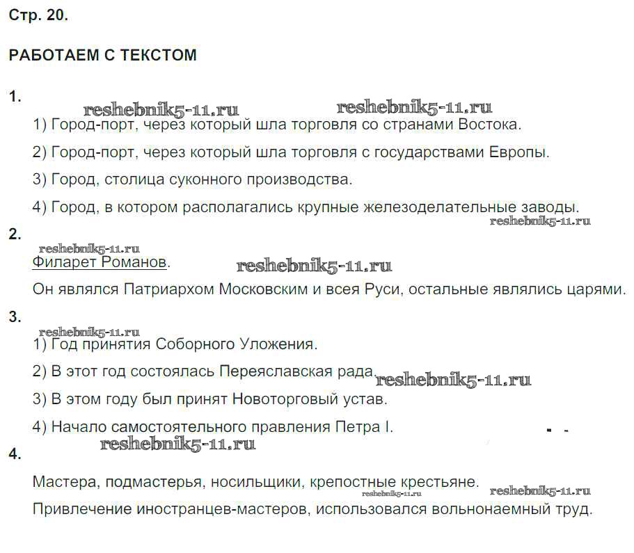 Готовая домашняя работа с ответами по Истории за 7 класс Данилов, Лукутин, Артасов Тетрадь-тренажёр Сферы Просвещение 2016 ФГОС - Страницы 20