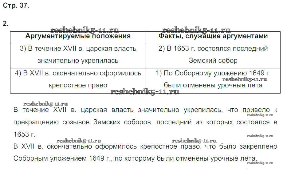 Готовая домашняя работа с ответами по Истории за 7 класс Данилов, Лукутин, Артасов Тетрадь-тренажёр Сферы Просвещение 2016 ФГОС - Страницы 37