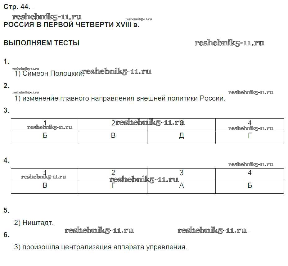 Готовая домашняя работа с ответами по Истории за 7 класс Данилов, Лукутин, Артасов Тетрадь-тренажёр Сферы Просвещение 2016 ФГОС - Страницы 44