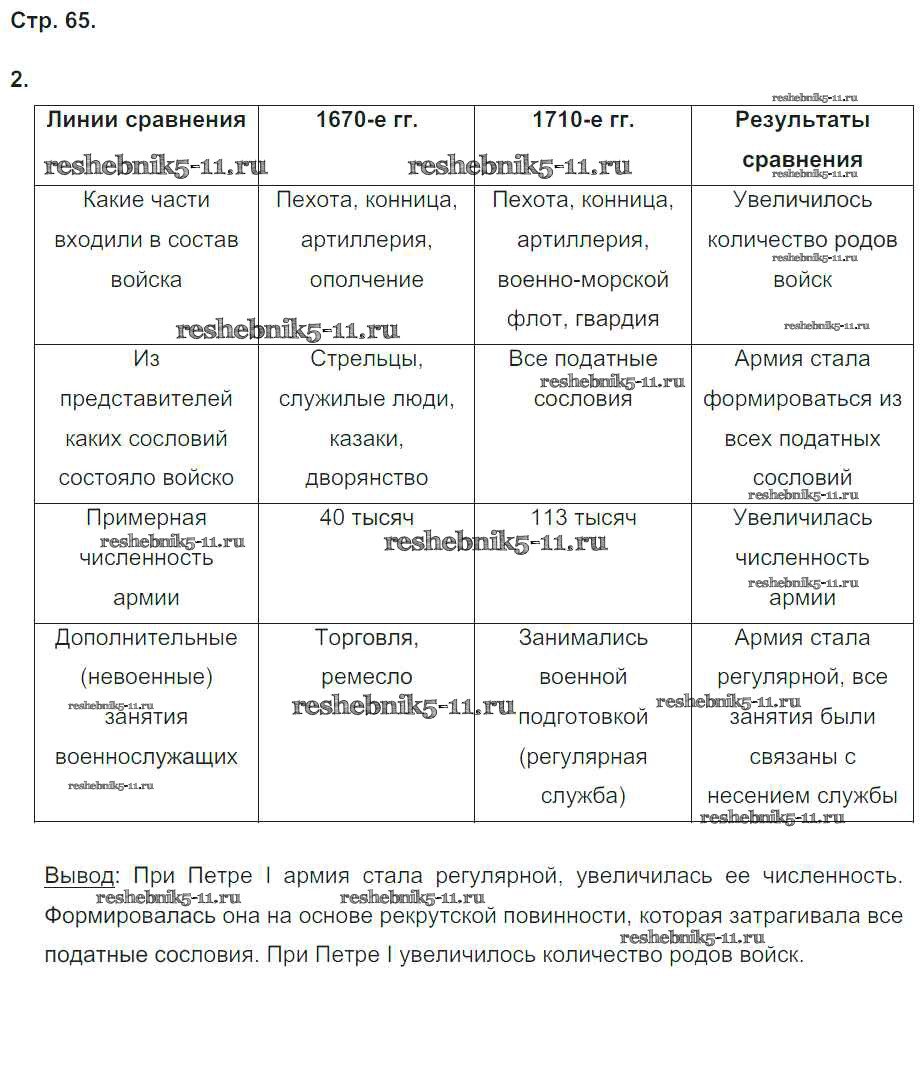 Готовая домашняя работа с ответами по Истории за 7 класс Данилов, Лукутин, Артасов Тетрадь-тренажёр Сферы Просвещение 2016 ФГОС - Страницы 65