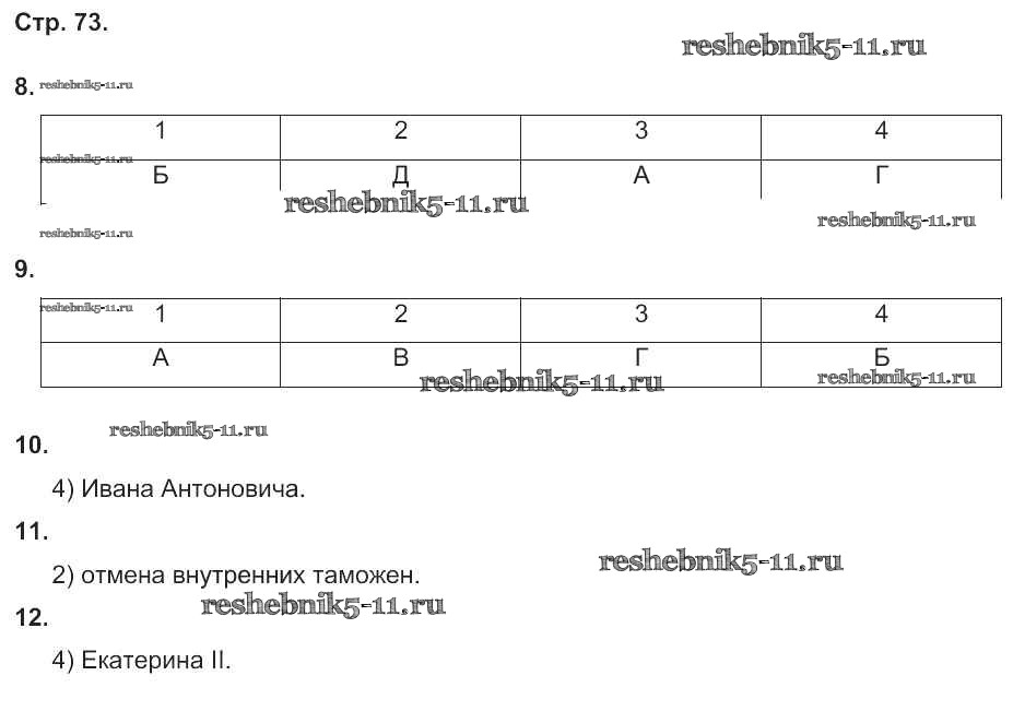 Готовая домашняя работа с ответами по Истории за 7 класс Данилов, Лукутин, Артасов Тетрадь-тренажёр Сферы Просвещение 2016 ФГОС - Страницы 73