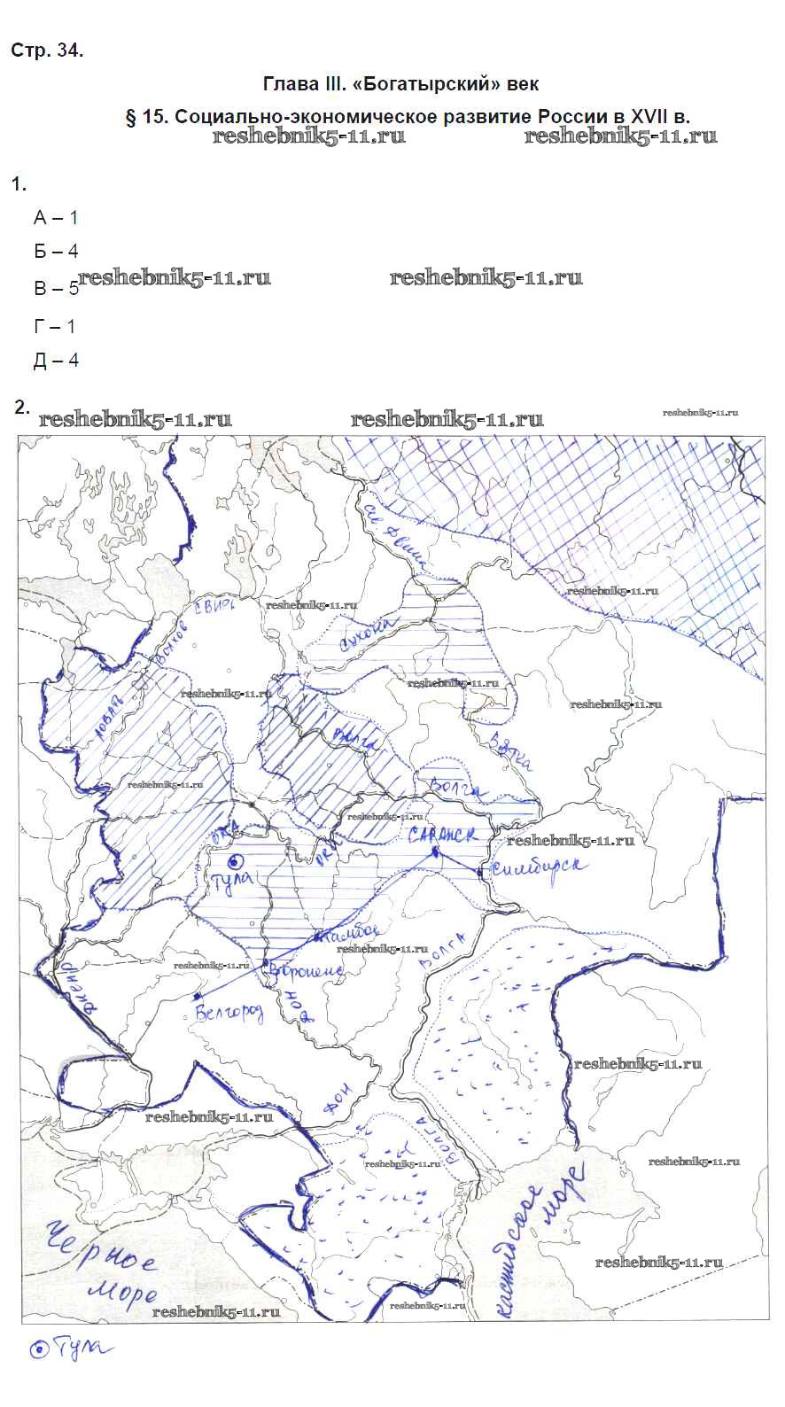 Готовая домашняя работа с ответами по Истории за 7 класс Симонова, Клоков Рабочая тетрадь УМК Дрофа 2018 ФГОС - Страницы 34