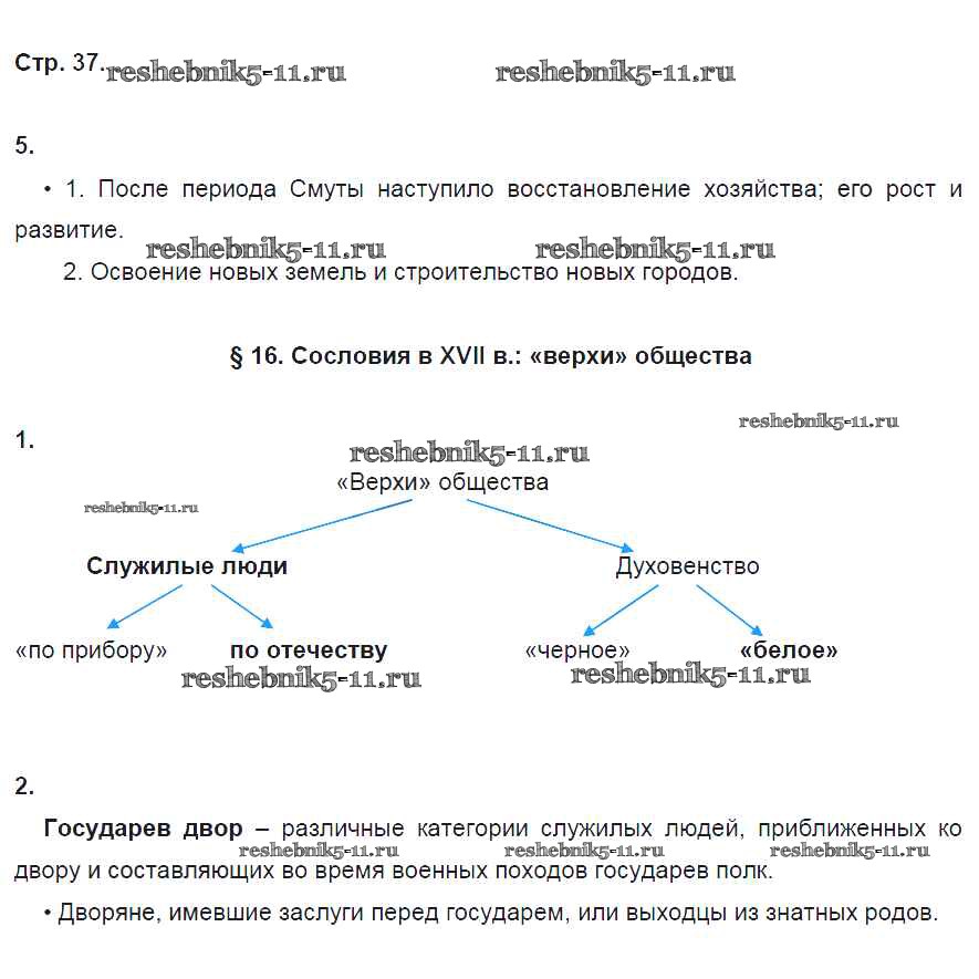 Готовая домашняя работа с ответами по Истории за 7 класс Симонова, Клоков Рабочая тетрадь УМК Дрофа 2018 ФГОС - Страницы 37