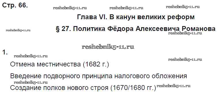 Готовая домашняя работа с ответами по Истории за 7 класс Симонова, Клоков Рабочая тетрадь УМК Дрофа 2018 ФГОС - Страницы 66
