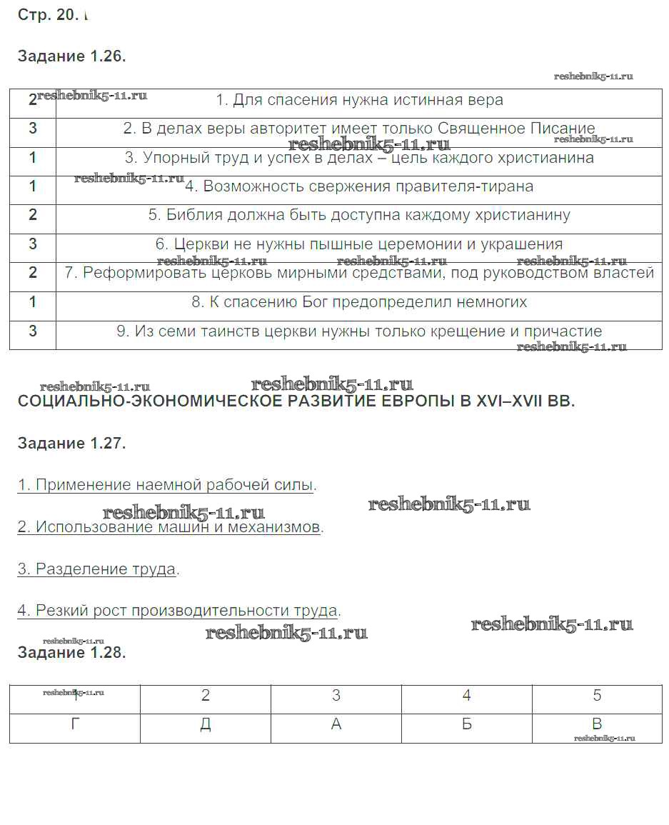 Готовая домашняя работа с ответами по Истории за 7 класс Пономарев Рабочая тетрадь УМК Экзамен 2016 ФГОС - Страницы 20
