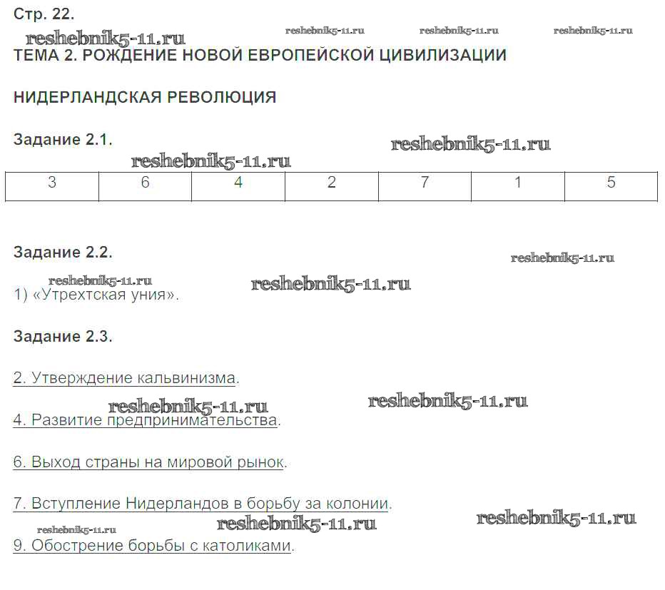 Готовая домашняя работа с ответами по Истории за 7 класс Пономарев Рабочая тетрадь УМК Экзамен 2016 ФГОС - Страницы 22