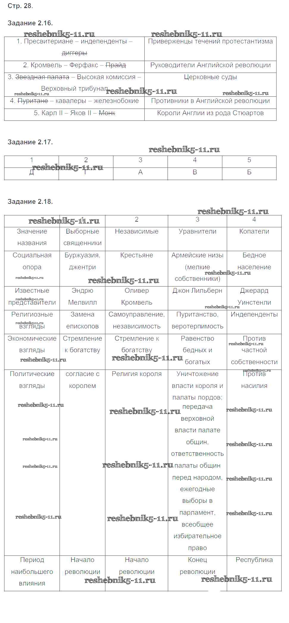 Готовая домашняя работа с ответами по Истории за 7 класс Пономарев Рабочая тетрадь УМК Экзамен 2016 ФГОС - Страницы 28