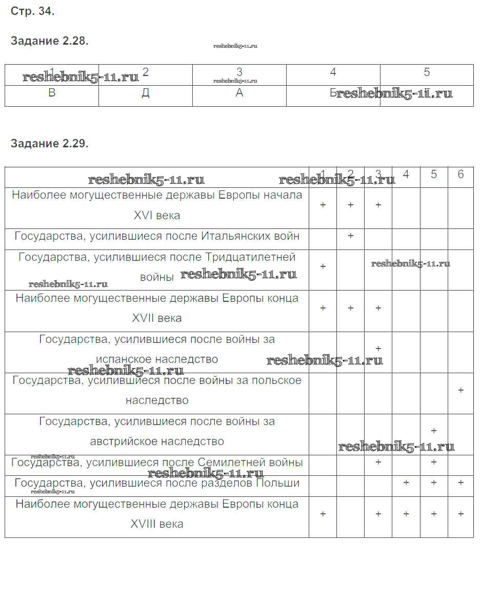 Готовая домашняя работа с ответами по Истории за 7 класс Пономарев Рабочая тетрадь УМК Экзамен 2016 ФГОС - Страницы 34