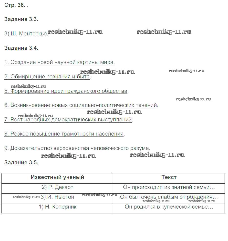 Готовая домашняя работа с ответами по Истории за 7 класс Пономарев Рабочая тетрадь УМК Экзамен 2016 ФГОС - Страницы 36