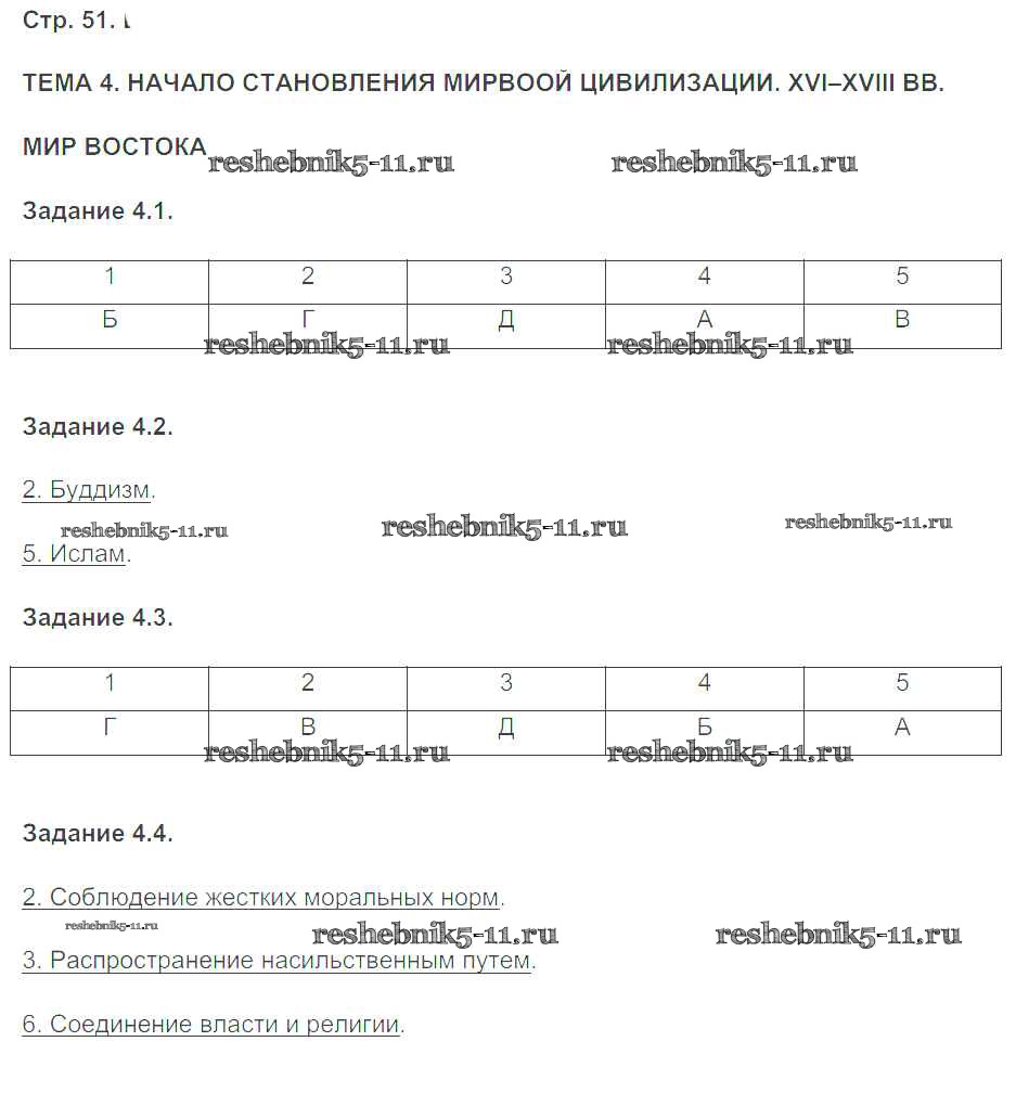 Готовая домашняя работа с ответами по Истории за 7 класс Пономарев Рабочая тетрадь УМК Экзамен 2016 ФГОС - Страницы 51