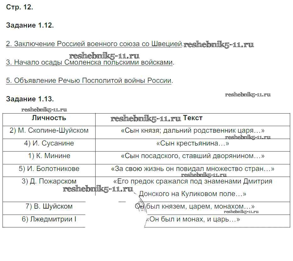 Готовая домашняя работа с ответами по Истории за 7 класс Симонова Рабочая тетрадь УМК Экзамен 2015 ФГОС - Страницы 12