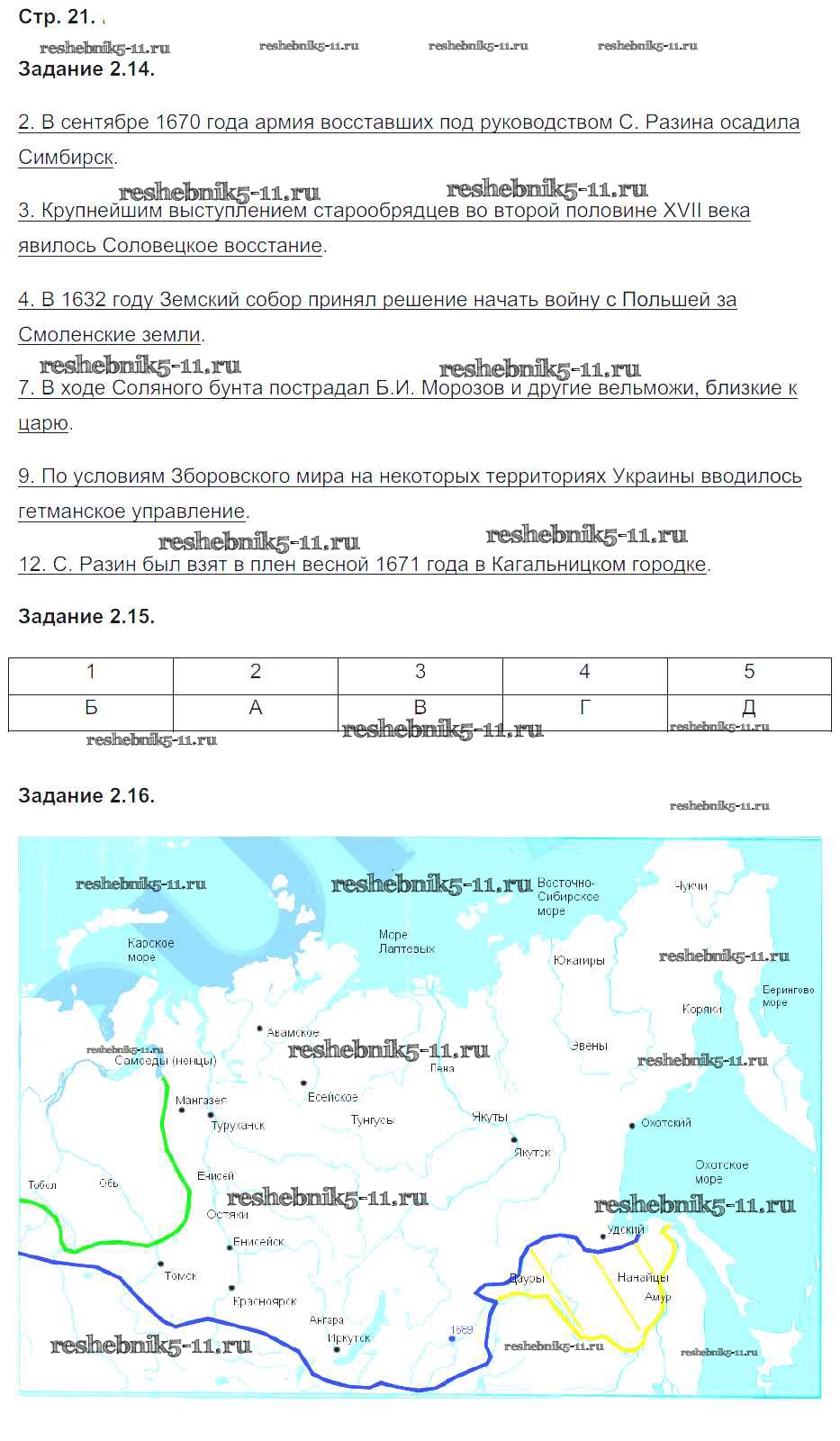 Готовая домашняя работа с ответами по Истории за 7 класс Симонова Рабочая тетрадь УМК Экзамен 2015 ФГОС - Страницы 21