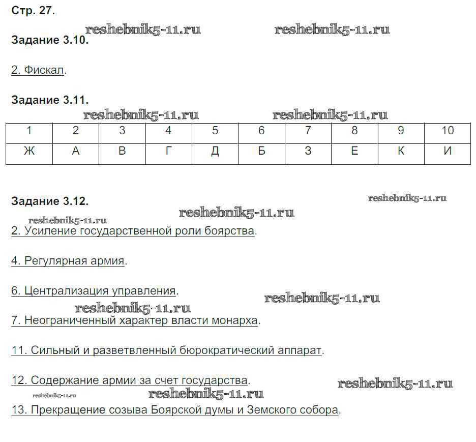 Готовая домашняя работа с ответами по Истории за 7 класс Симонова Рабочая тетрадь УМК Экзамен 2015 ФГОС - Страницы 27