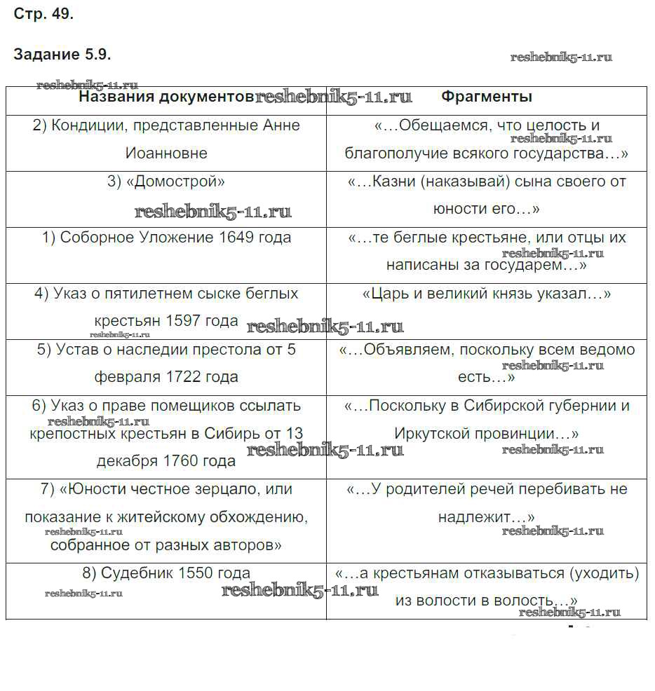 Готовая домашняя работа с ответами по Истории за 7 класс Симонова Рабочая тетрадь УМК Экзамен 2015 ФГОС - Страницы 49