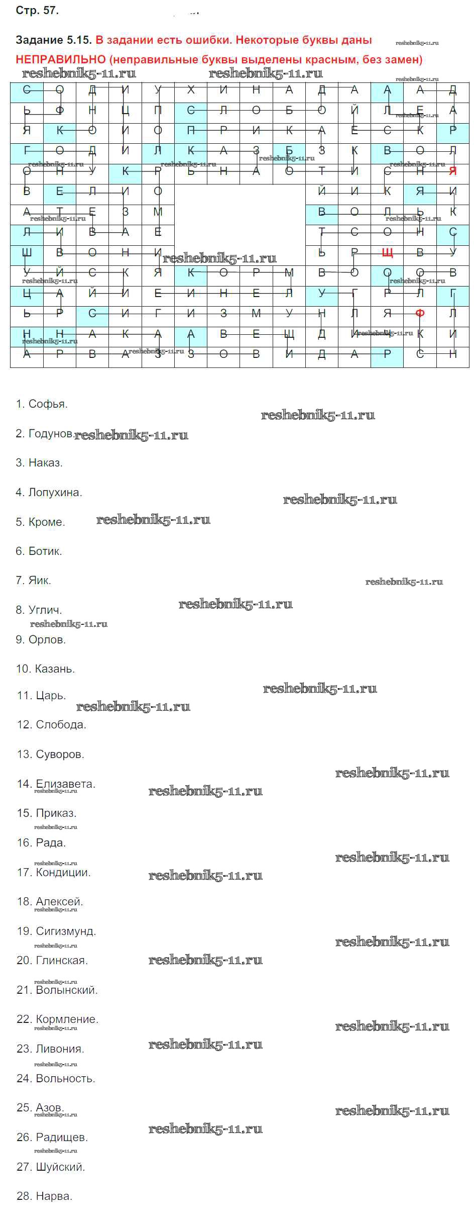Готовая домашняя работа с ответами по Истории за 7 класс Симонова Рабочая тетрадь УМК Экзамен 2015 ФГОС - Страницы 57