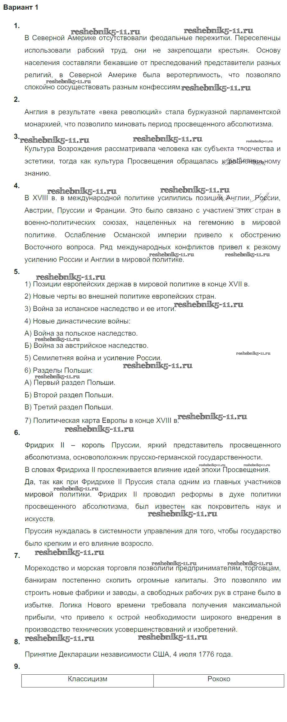 Решебник / век просвещения / проверочная работа 2 / вариант 1