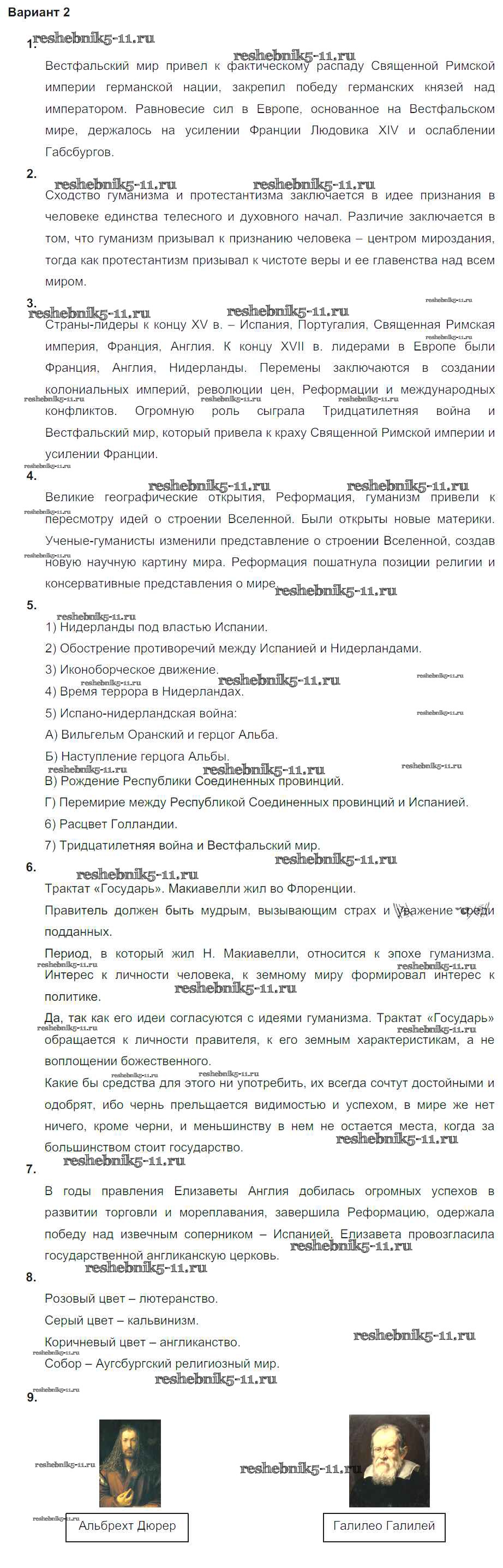 Решебник / Европа в XVI-XVII в веках-традиции и новизна / проверочная работа 2 / вариант 2