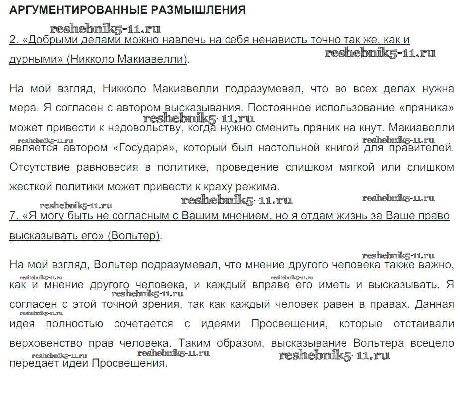 Готовая домашняя работа с ответами по Истории за 7 класс Уколова Тетрадь-экзаменатор Сферы Просвещение 2017 ФГОС - Творческие работы Аргументированные размышления