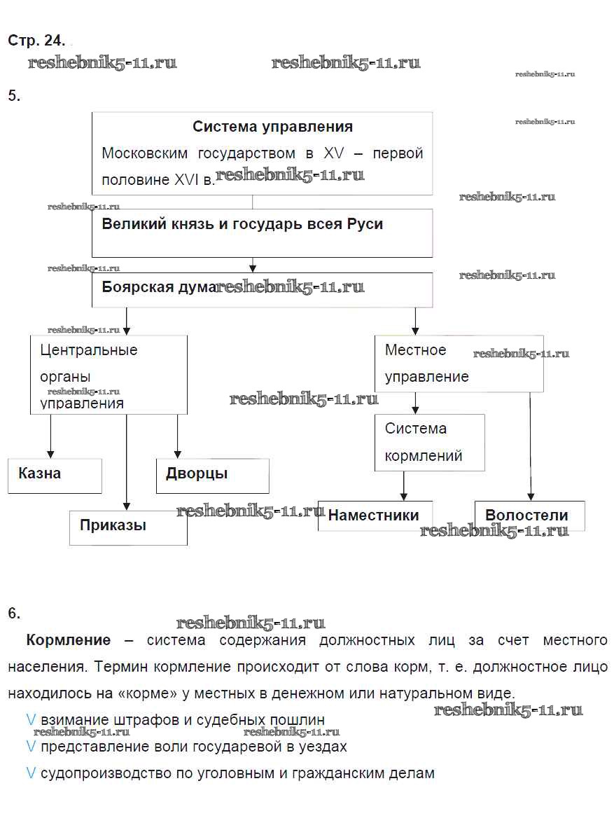 Готовая домашняя работа с ответами по Истории за 7 класс Чернова Рабочая тетрадь УМК Часть 1, 2 Экзамен 2017 ФГОС - Часть 1. Страницы 24