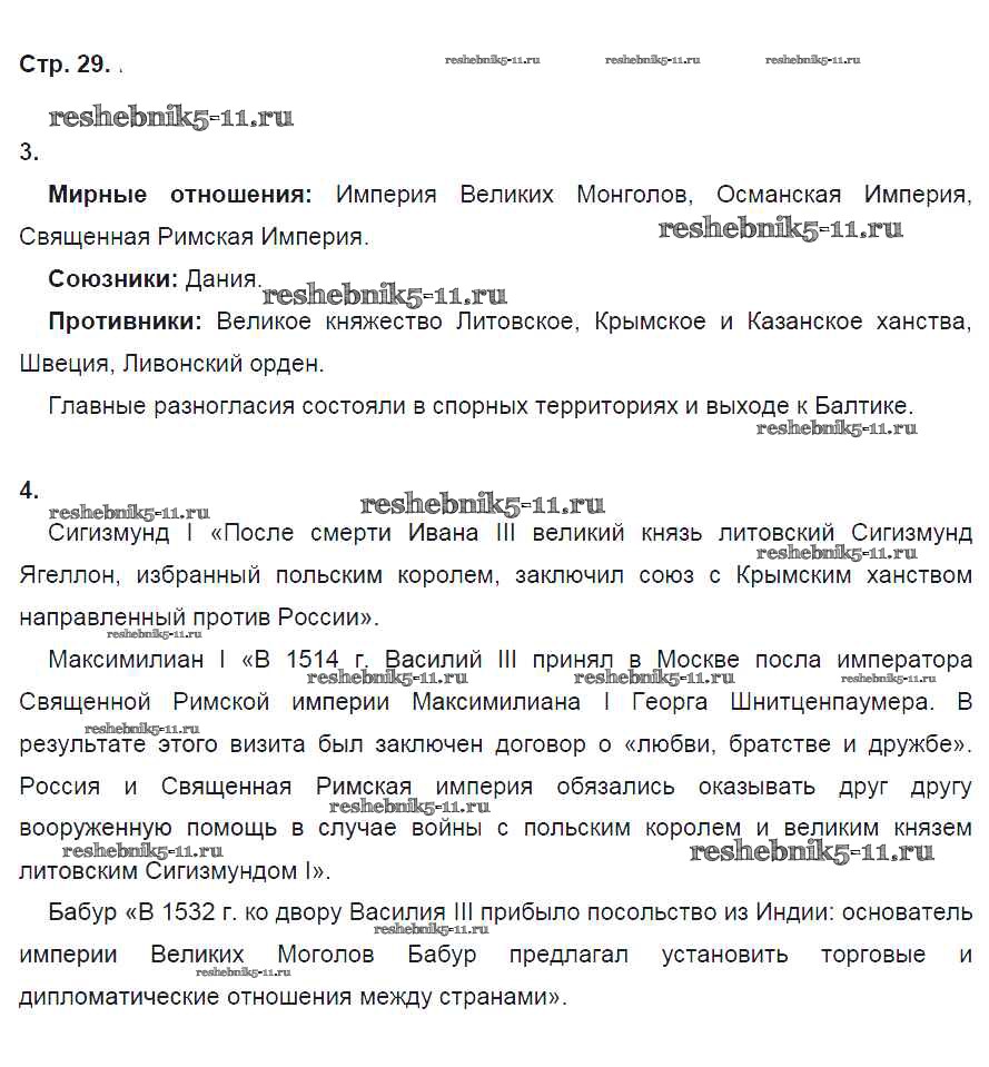 Готовая домашняя работа с ответами по Истории за 7 класс Чернова Рабочая тетрадь УМК Часть 1, 2 Экзамен 2017 ФГОС - Часть 1. Страницы 29
