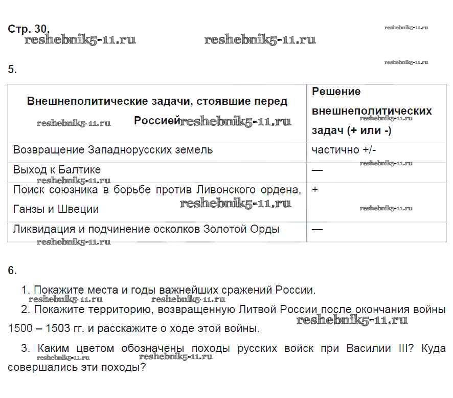 Готовая домашняя работа с ответами по Истории за 7 класс Чернова Рабочая тетрадь УМК Часть 1, 2 Экзамен 2017 ФГОС - Часть 1. Страницы 30