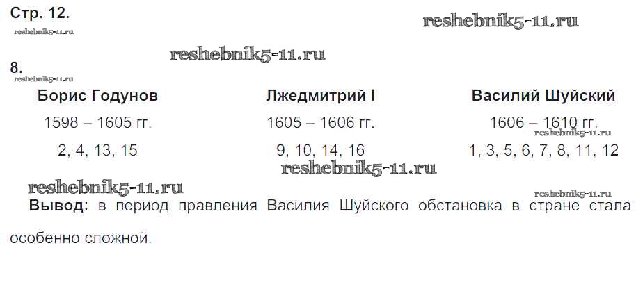 Готовая домашняя работа с ответами по Истории за 7 класс Чернова Рабочая тетрадь УМК Часть 1, 2 Экзамен 2017 ФГОС - Часть 2. Страницы 12