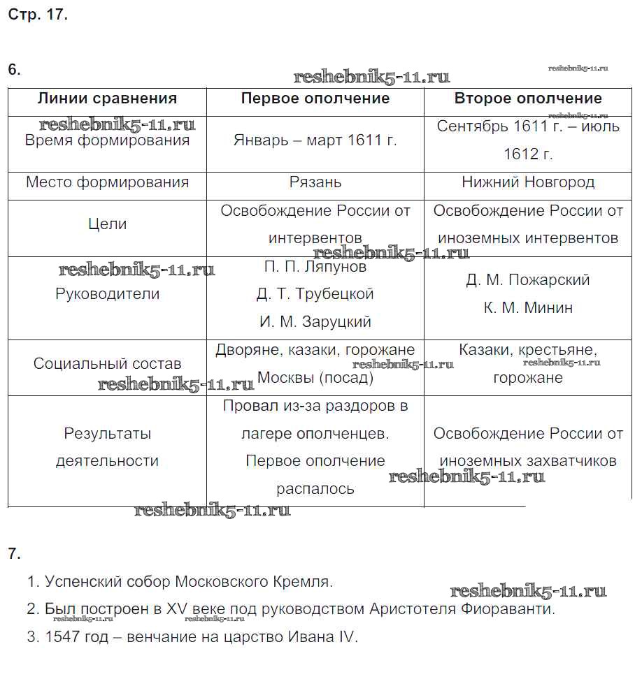 Готовая домашняя работа с ответами по Истории за 7 класс Чернова Рабочая тетрадь УМК Часть 1, 2 Экзамен 2017 ФГОС - Часть 2. Страницы 17