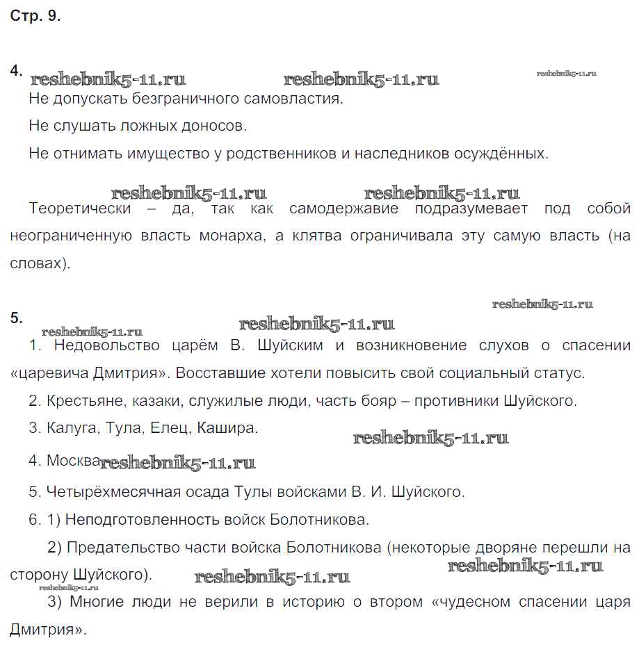 Готовая домашняя работа с ответами по Истории за 7 класс Чернова Рабочая тетрадь УМК Часть 1, 2 Экзамен 2017 ФГОС - Часть 2. Страницы 9