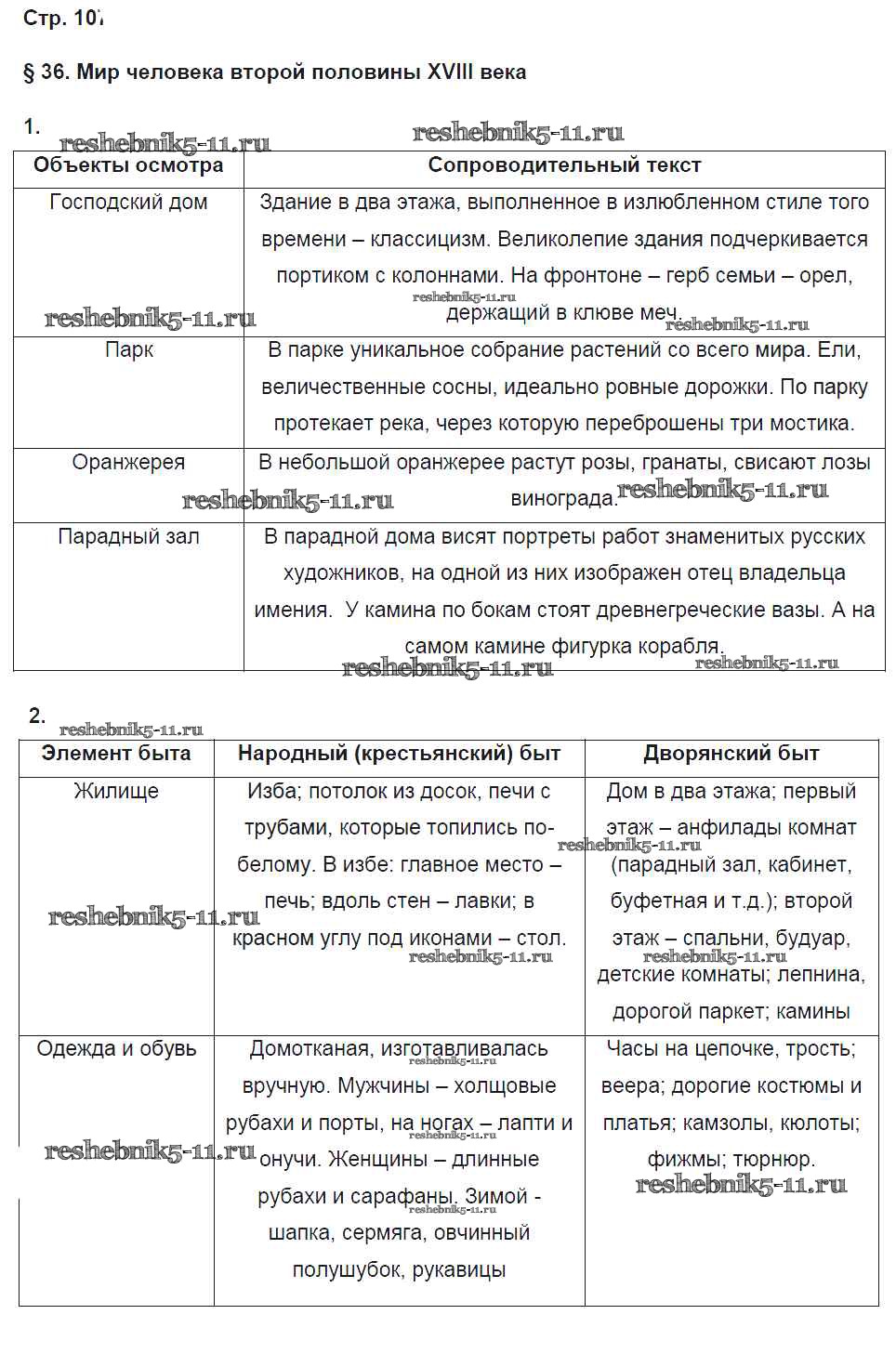 Готовая домашняя работа с ответами по Истории за 7 класс Баранов Рабочая тетрадь Алгоритм успеха Вентана-граф 2017 ФГОС - Страницы 107