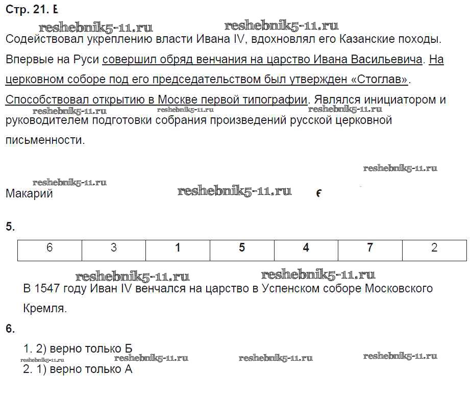 Готовая домашняя работа с ответами по Истории за 7 класс Баранов Рабочая тетрадь Алгоритм успеха Вентана-граф 2017 ФГОС - Страницы 21