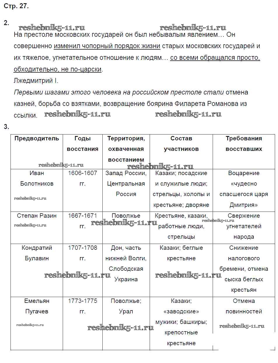 Готовая домашняя работа с ответами по Истории за 7 класс Баранов Рабочая тетрадь Алгоритм успеха Вентана-граф 2017 ФГОС - Страницы 27