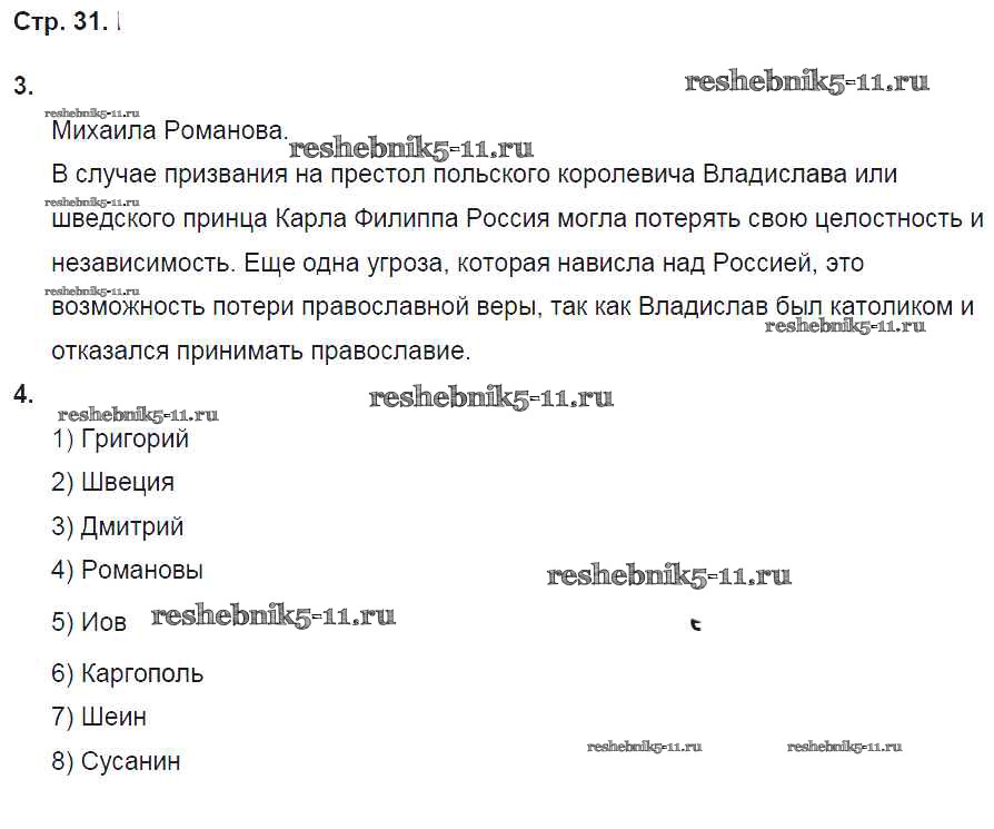 Готовая домашняя работа с ответами по Истории за 7 класс Баранов Рабочая тетрадь Алгоритм успеха Вентана-граф 2017 ФГОС - Страницы 31