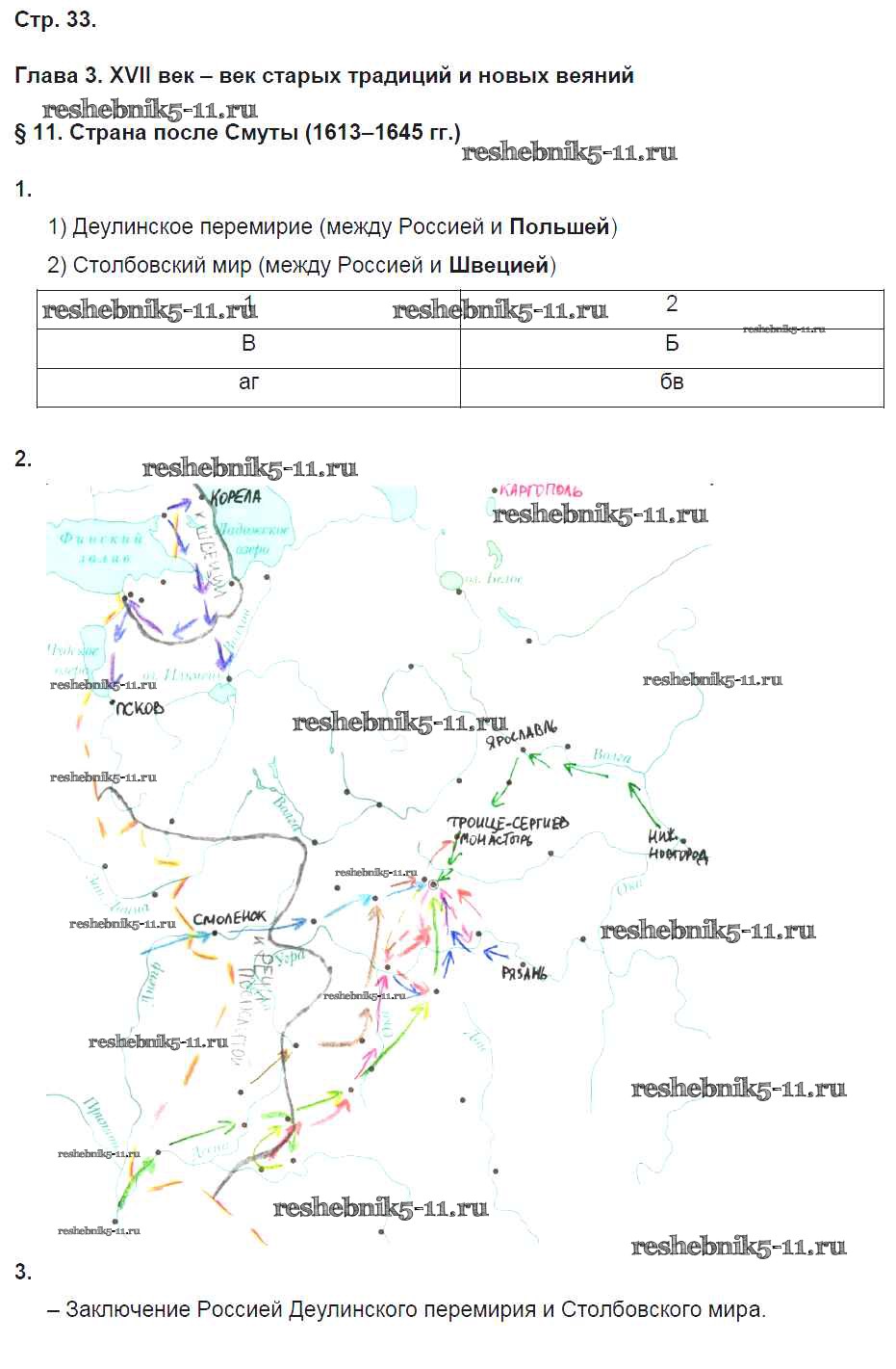 Готовая домашняя работа с ответами по Истории за 7 класс Баранов Рабочая тетрадь Алгоритм успеха Вентана-граф 2017 ФГОС - Страницы 33