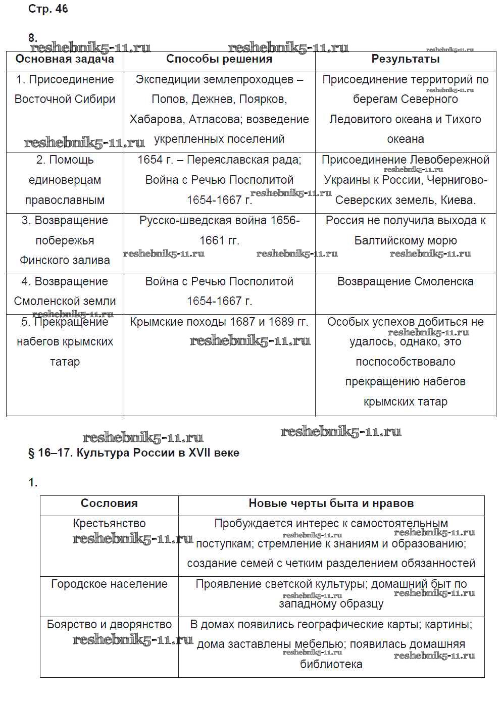 Готовая домашняя работа с ответами по Истории за 7 класс Баранов Рабочая тетрадь Алгоритм успеха Вентана-граф 2017 ФГОС - Страницы 46