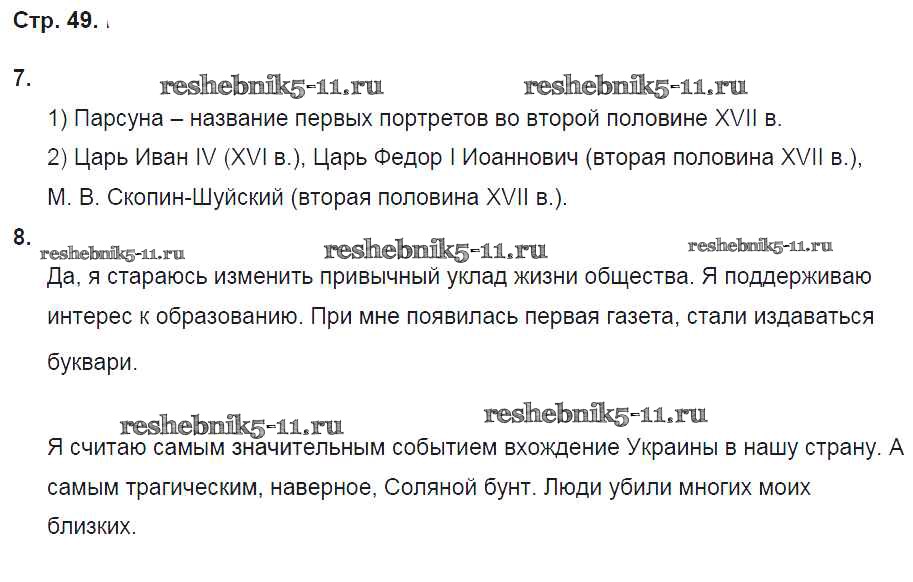Готовая домашняя работа с ответами по Истории за 7 класс Баранов Рабочая тетрадь Алгоритм успеха Вентана-граф 2017 ФГОС - Страницы 49