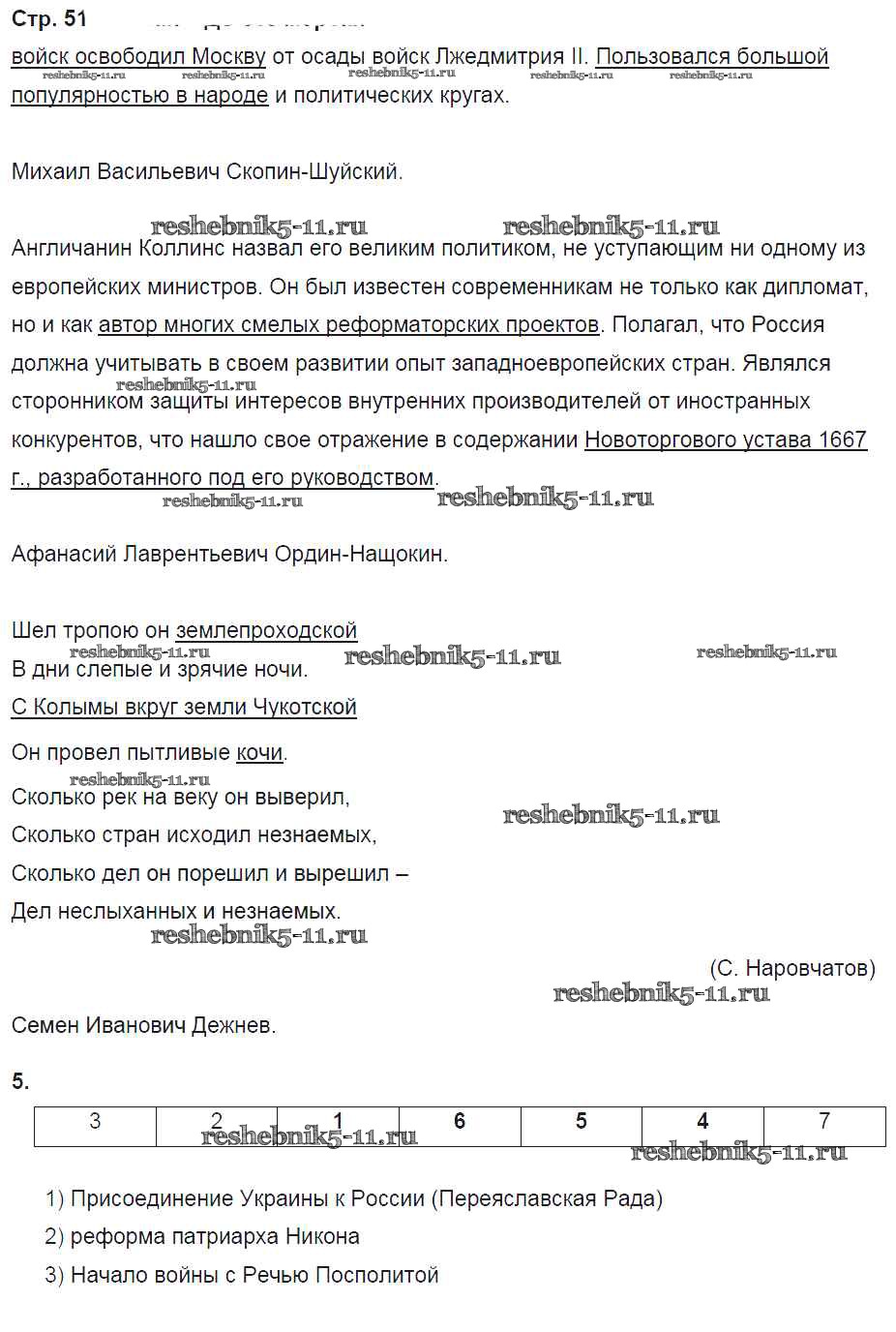 Готовая домашняя работа с ответами по Истории за 7 класс Баранов Рабочая тетрадь Алгоритм успеха Вентана-граф 2017 ФГОС - Страницы 51