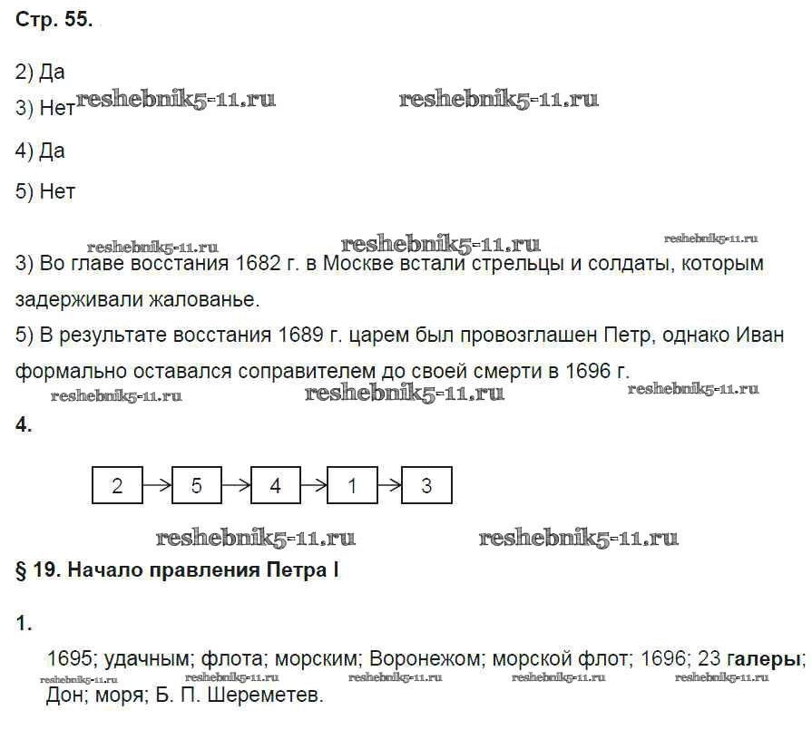 Готовая домашняя работа с ответами по Истории за 7 класс Баранов Рабочая тетрадь Алгоритм успеха Вентана-граф 2017 ФГОС - Страницы 55