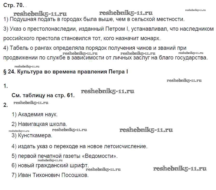 Готовая домашняя работа с ответами по Истории за 7 класс Баранов Рабочая тетрадь Алгоритм успеха Вентана-граф 2017 ФГОС - Страницы 70