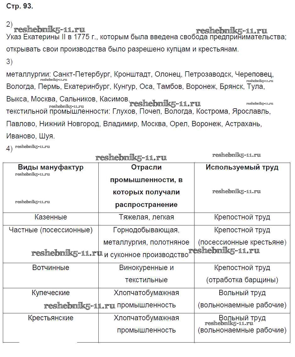 Готовая домашняя работа с ответами по Истории за 7 класс Баранов Рабочая тетрадь Алгоритм успеха Вентана-граф 2017 ФГОС - Страницы 93