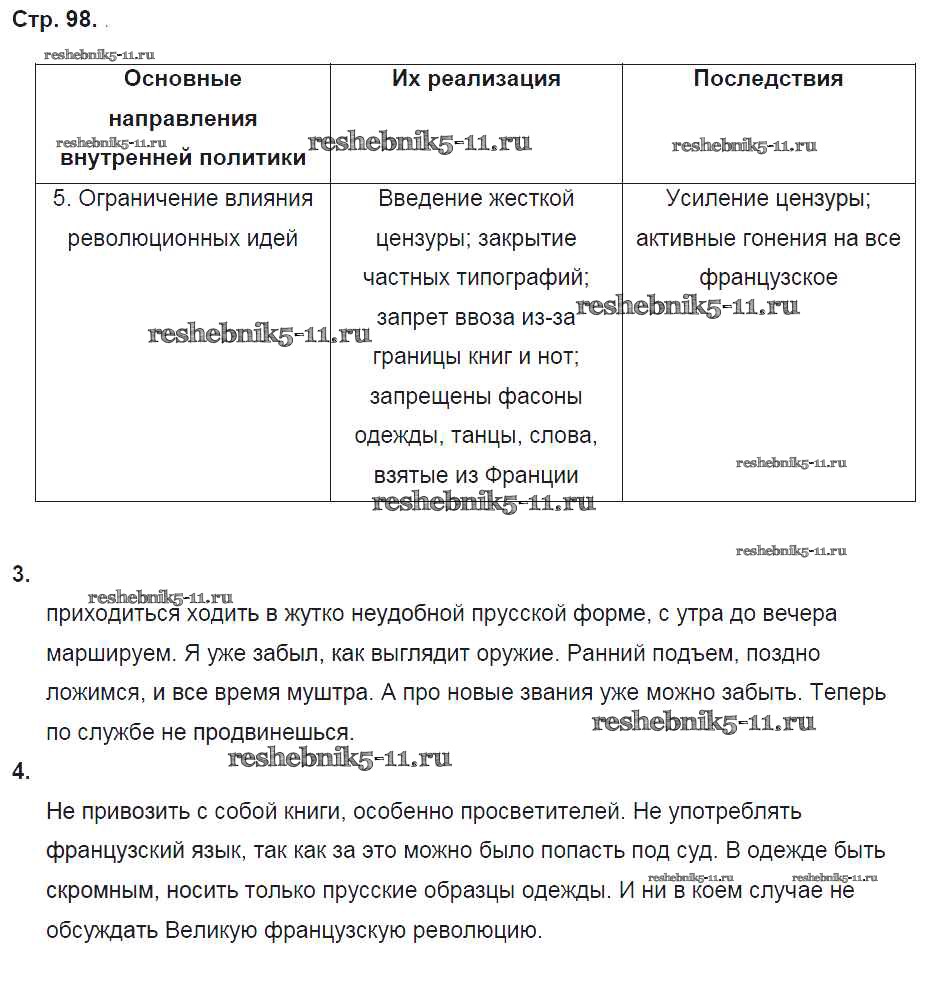 Готовая домашняя работа с ответами по Истории за 7 класс Баранов Рабочая тетрадь Алгоритм успеха Вентана-граф 2017 ФГОС - Страницы 98
