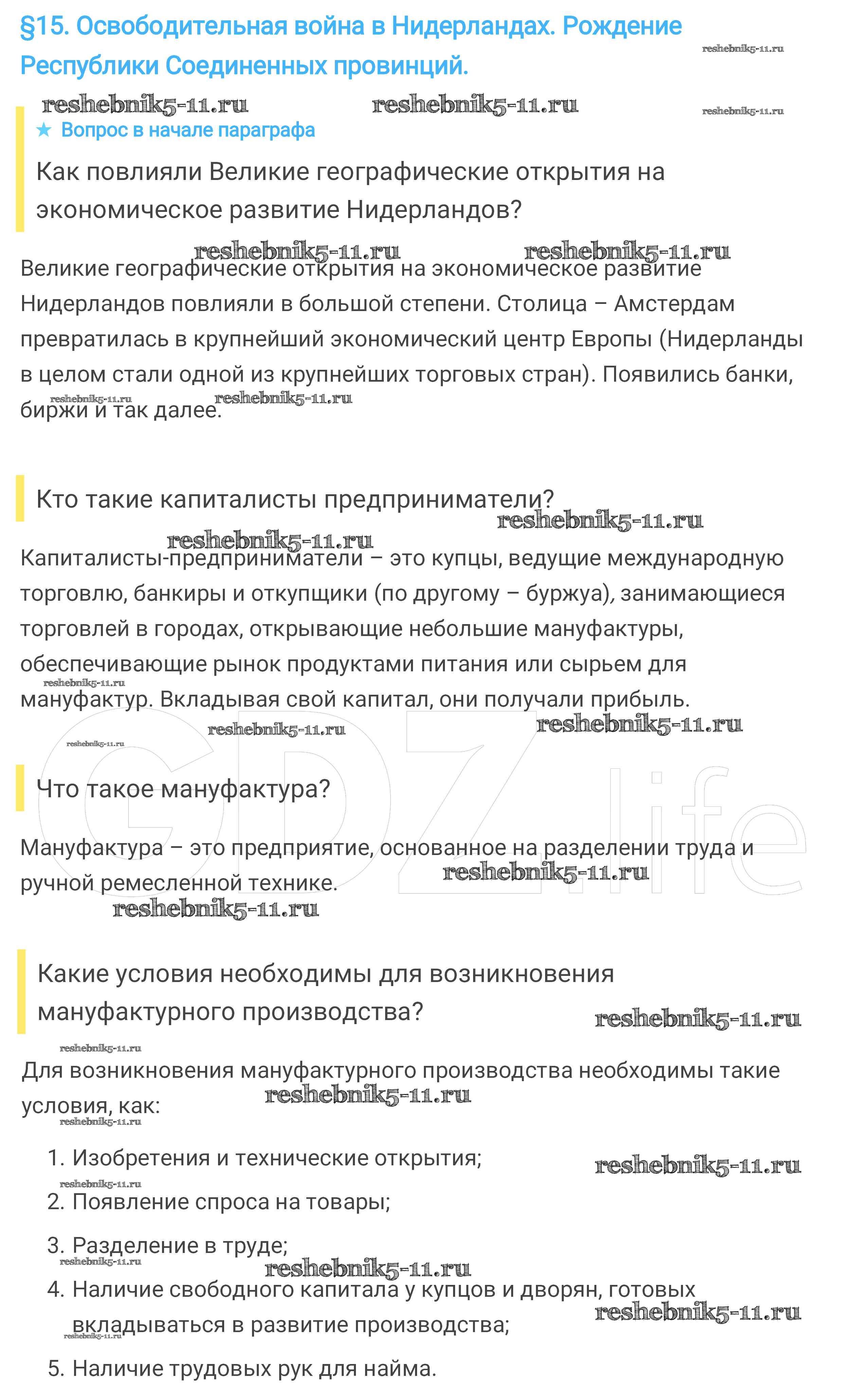Готовая домашняя работа с ответами по Истории за 7 класс Юдовская, Баранов, Ванюшкина Учебник Просвещение 2014 ФГОС - Параграфы 15