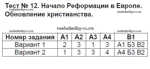 Готовая домашняя работа с ответами по Истории за 7 класс Волкова Контрольно-измерительные материалы (КИМ) ВАКО 2017 ФГОС - Тесты 12