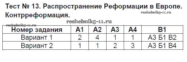 Готовая домашняя работа с ответами по Истории за 7 класс Волкова Контрольно-измерительные материалы (КИМ) ВАКО 2017 ФГОС - Тесты 13