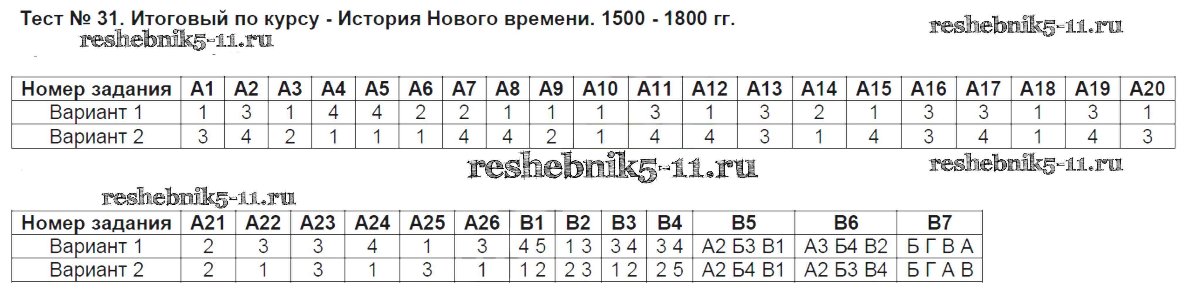 Готовая домашняя работа с ответами по Истории за 7 класс Волкова Контрольно-измерительные материалы (КИМ) ВАКО 2017 ФГОС - Тесты 31
