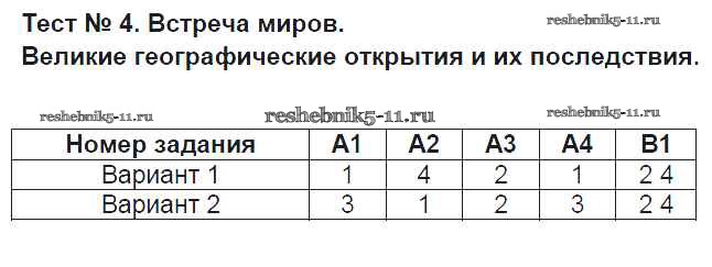Готовая домашняя работа с ответами по Истории за 7 класс Волкова Контрольно-измерительные материалы (КИМ) ВАКО 2017 ФГОС - Тесты 4