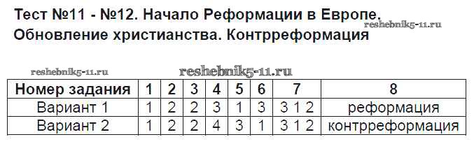 Готовая домашняя работа с ответами по Истории за 7 класс Калачева Контрольные измерительные материалы Экзамен 2016 ФГОС - Тесты 11-12