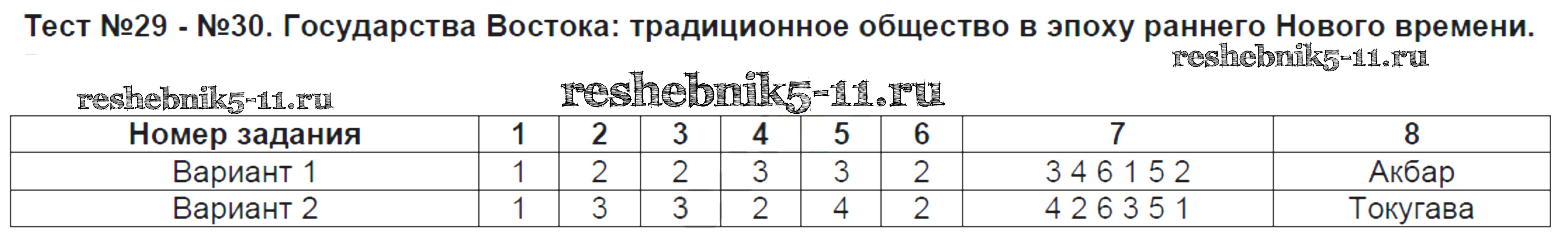 Готовая домашняя работа с ответами по Истории за 7 класс Калачева Контрольные измерительные материалы Экзамен 2016 ФГОС - Тесты 29-30