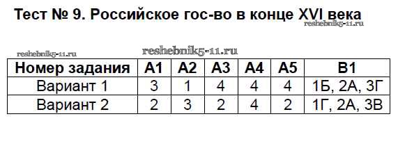 Готовая домашняя работа с ответами по Истории за 7 класс Волкова Контрольно-измерительные материалы (КИМ) ВАКО 2017 ФГОС - Тесты 9