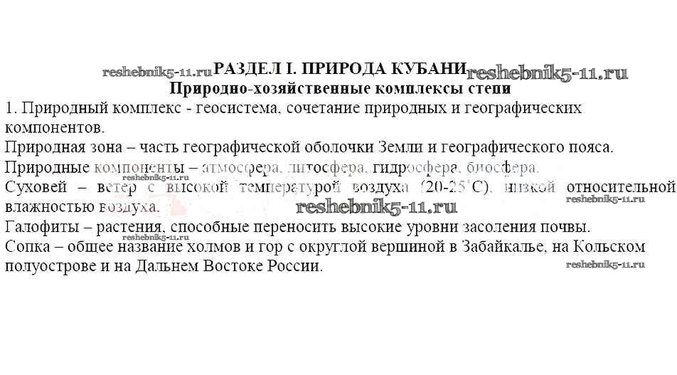 Готовая домашняя работа с ответами по Кубановедению за 7 класс Лукьянов Рабочая тетрадь Перспективы образования 2018 - 2. Природно-хозяйственные комплексы степи 1