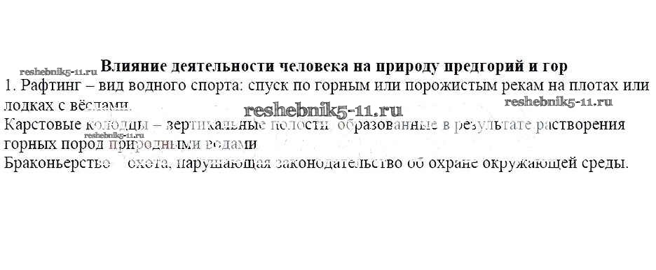 Готовая домашняя работа с ответами по Кубановедению за 7 класс Лукьянов Рабочая тетрадь Перспективы образования 2018 - 5. Влияние деятельности человека на природу предгорий и гор 1